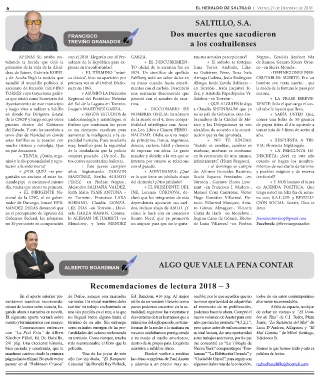 6 EL HERALDO DE SALTILLO | Viernes 21 de Diciembre de 2018