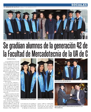 La generación 42 de la Facultad de Mercadotecnia, acompañados de sus madrinas de generación Alicia de la Peña de Leon y Juana María Saucedo.