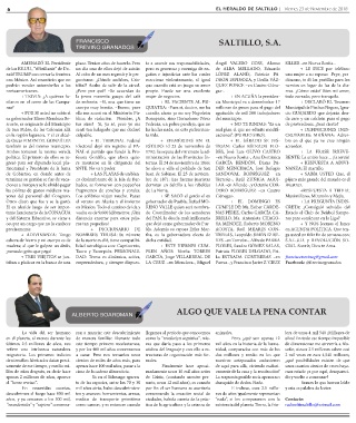 6 EL HERALDO DE SALTILLO | Viernes 23 de Noviembre de 2018