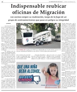 que un episodio así se repita, in- ellos cometieron allá, y son éstos Desde hace alrededor de quina con Torreón, en la colonia la llegada de cientos de migran-