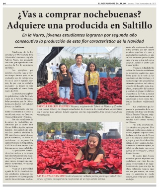 de flor es cultivada en el centro y por el doctor Luis Alonso Valdez Aguilar, son las responsables de la producción de las chebuena saltillense son Brenda