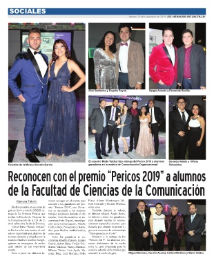 Con el lema “Somos Pericos” Gráfico Web, Periodismo y Narra- Saldaña por obtener el primer li-